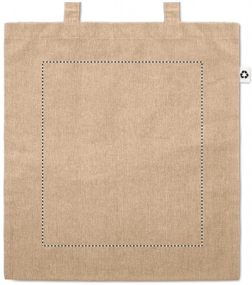 Tygkasse i tvåfärgad återvunnen bomull och återvunnen polyester med långa handtag (20%/80%). Ca 140gr/m². Den här artikeln kan krympa efter tryckning.