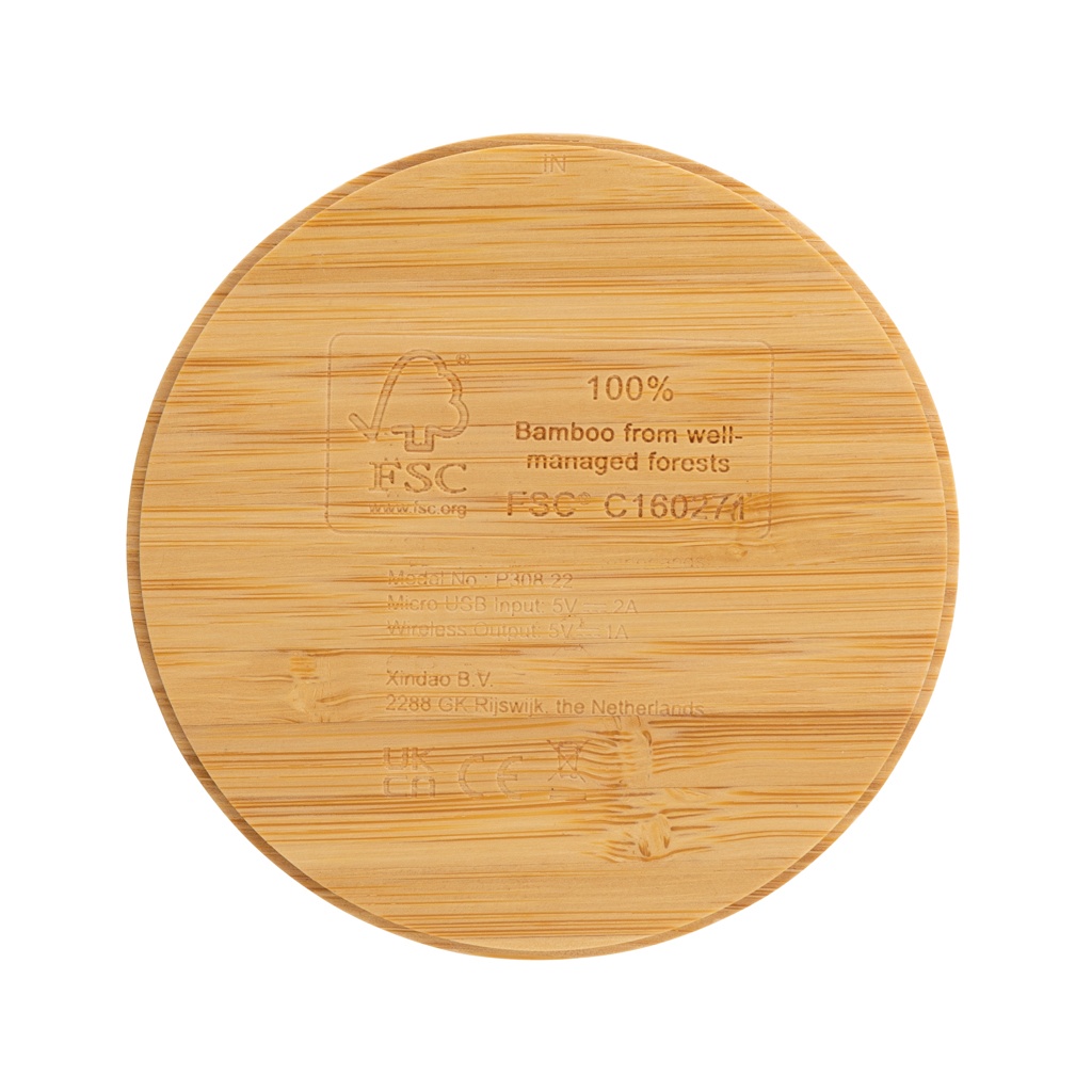 Logotrade reklamprodukter bild: 5W rund trådlös laddare i bambu