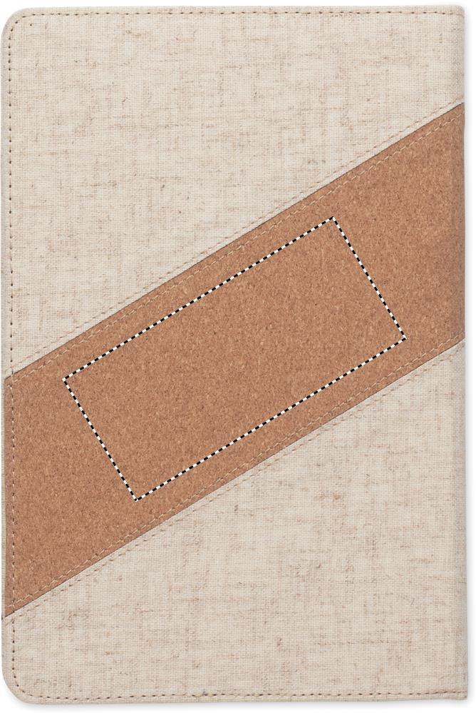 2-i-1-anteckningsbok. A5-anteckningsbok med integrerad trådlös laddare 15W. Med detaljer i bomull och kork på omslaget, 128 linjerade ark (64 ark). Bokmärke med band.
