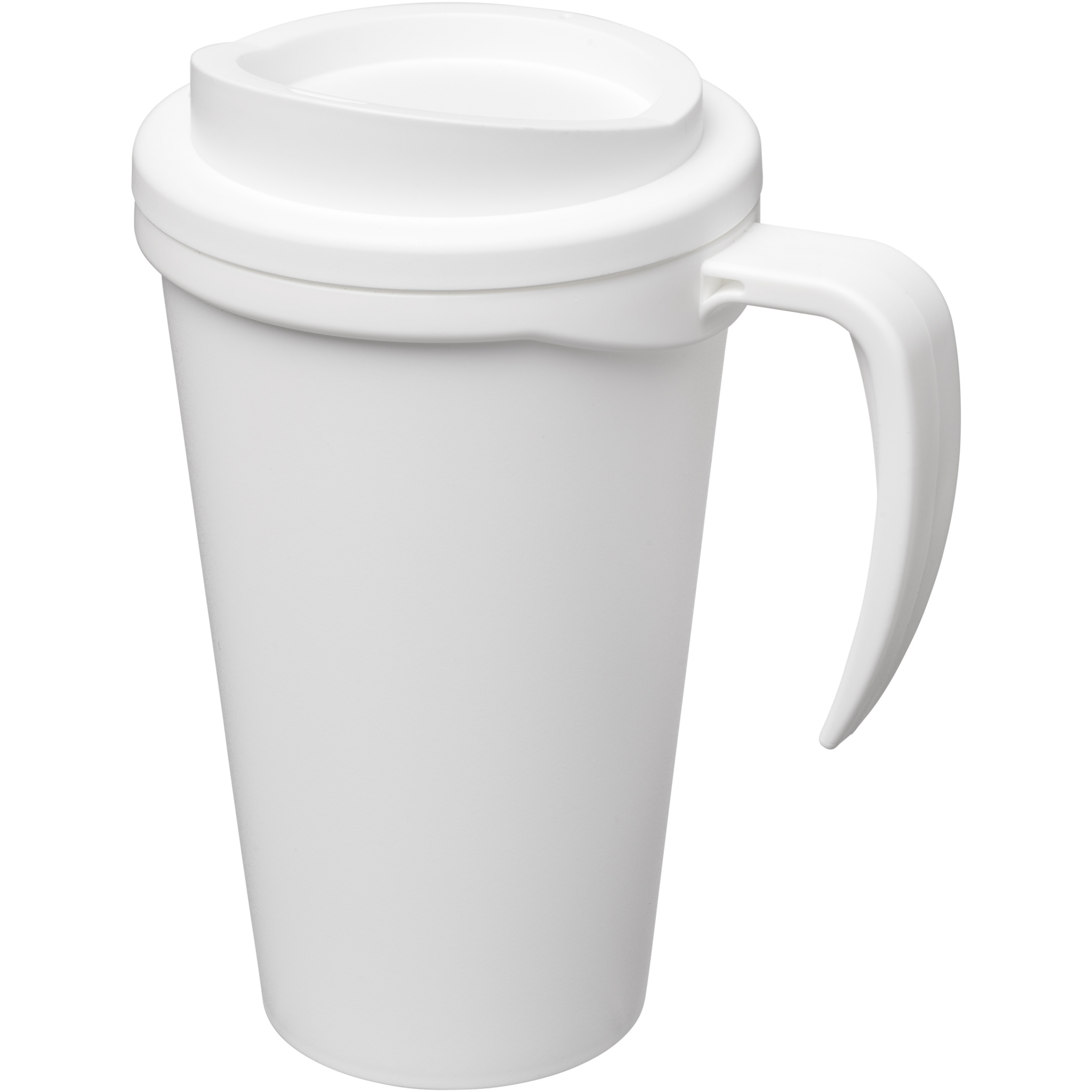 Termosmugg med dubbelvägg, skruvlock och integrerat handtag. Skapa den perfekta muggen genom att mixa och matcha färger. Tillverkad i Storbritannien. Levereras i vit presentförpackning. BPA-fri. Förpackad i en återvunnen PE plastpåse. EN12875-1-kompatibel, tål maskindisk och mikrovågsugn.