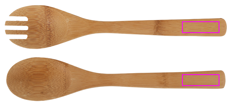 Fina salladsbestick av bambu. Vi graverar din logotyp på skedens handtag.