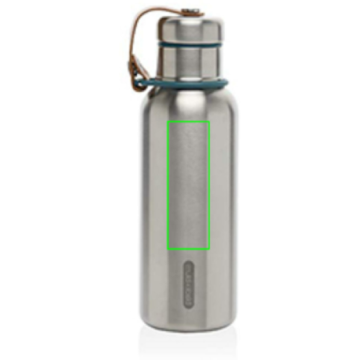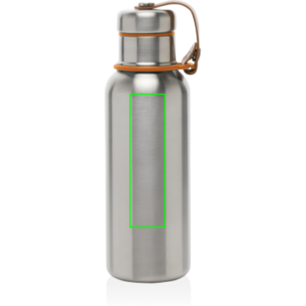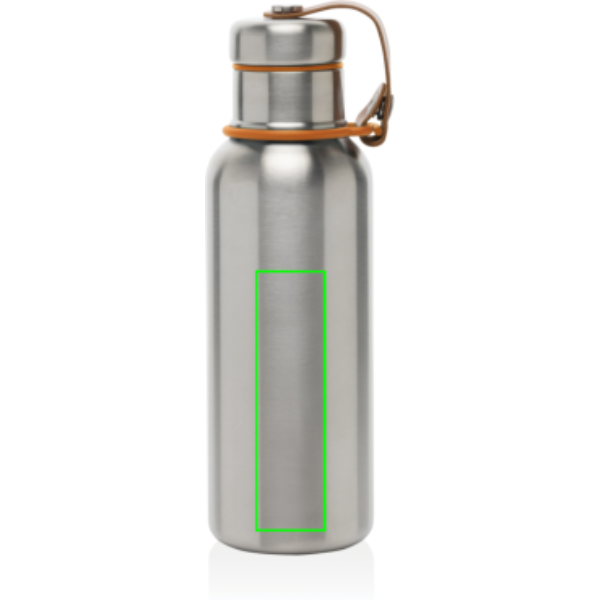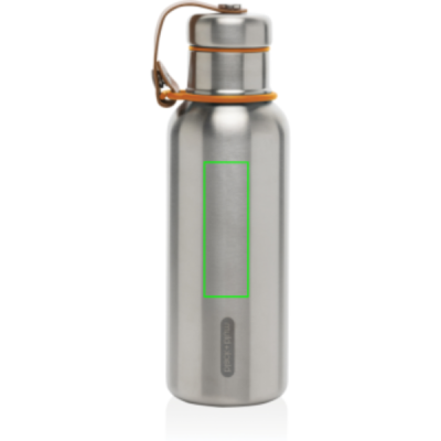 Stainless Steel Insulated Water Bottle är en elegant vakuumförseglad flaska som håller drycker kalla i 24 timmar eller varma i 12 timmar. Locket är också helt i rostfritt stål, vilket innebär att vattnet inte kommer i kontakt med någon plast. Konstlädret fungerar som en bärögla och är en fin designdetalj. Endast handtvätt