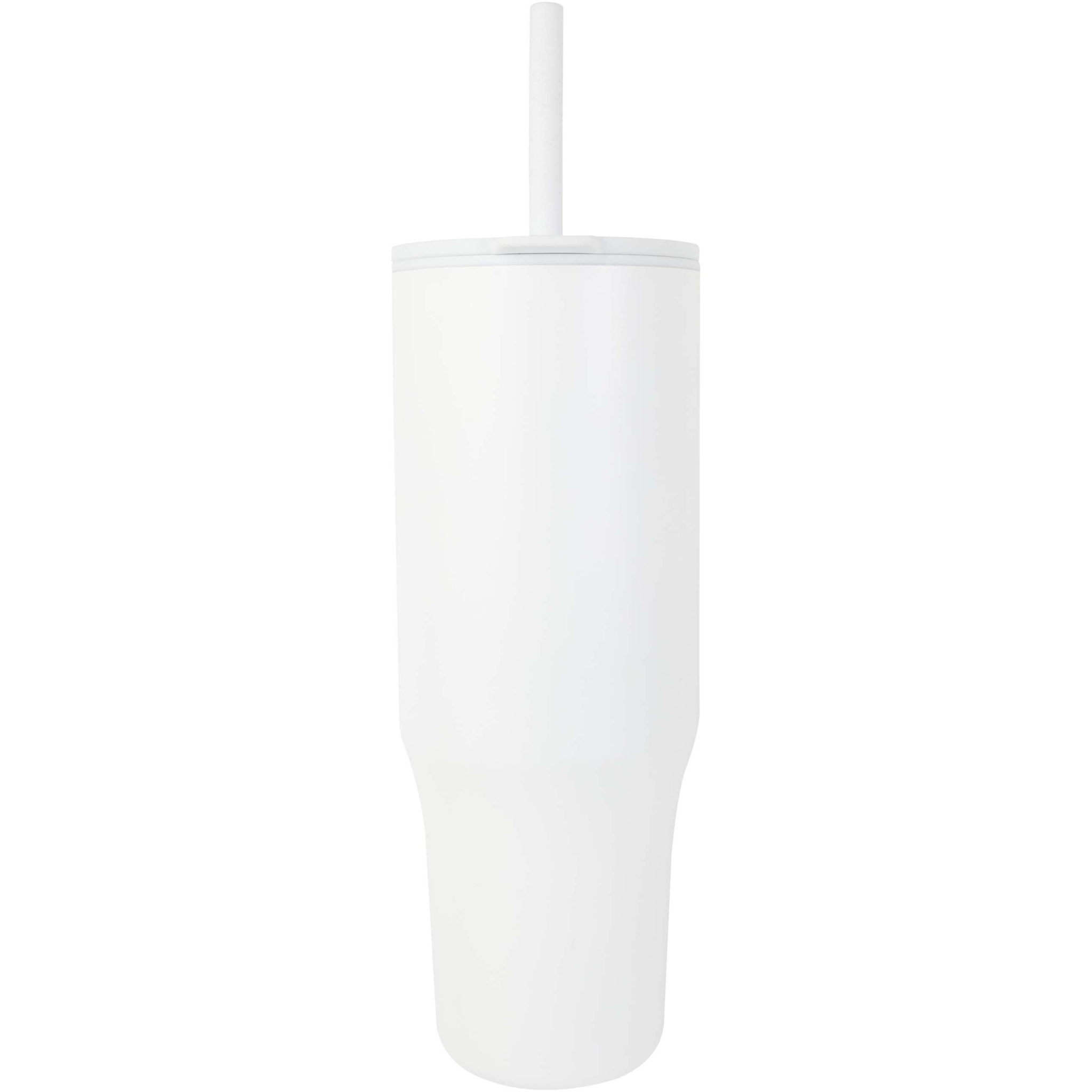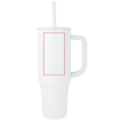 Termos med en slitstark yttervägg av RCS-certifierat återvunnet rostfritt stål och innervägg av plast. Den har ett integrerat sugrör i silikon av livsmedelskvalitet och ett stänksäkert trycklock för en smidig drickupplevelse. Denna termos är också lämplig för varma drycker, men det rekommenderas inte att dricka dem med hjälp av sugröret. För att låta din dryck svalna, ta av locket innan du förtär den. Volymkapacitet: 900 ml. Endast handdisk.
