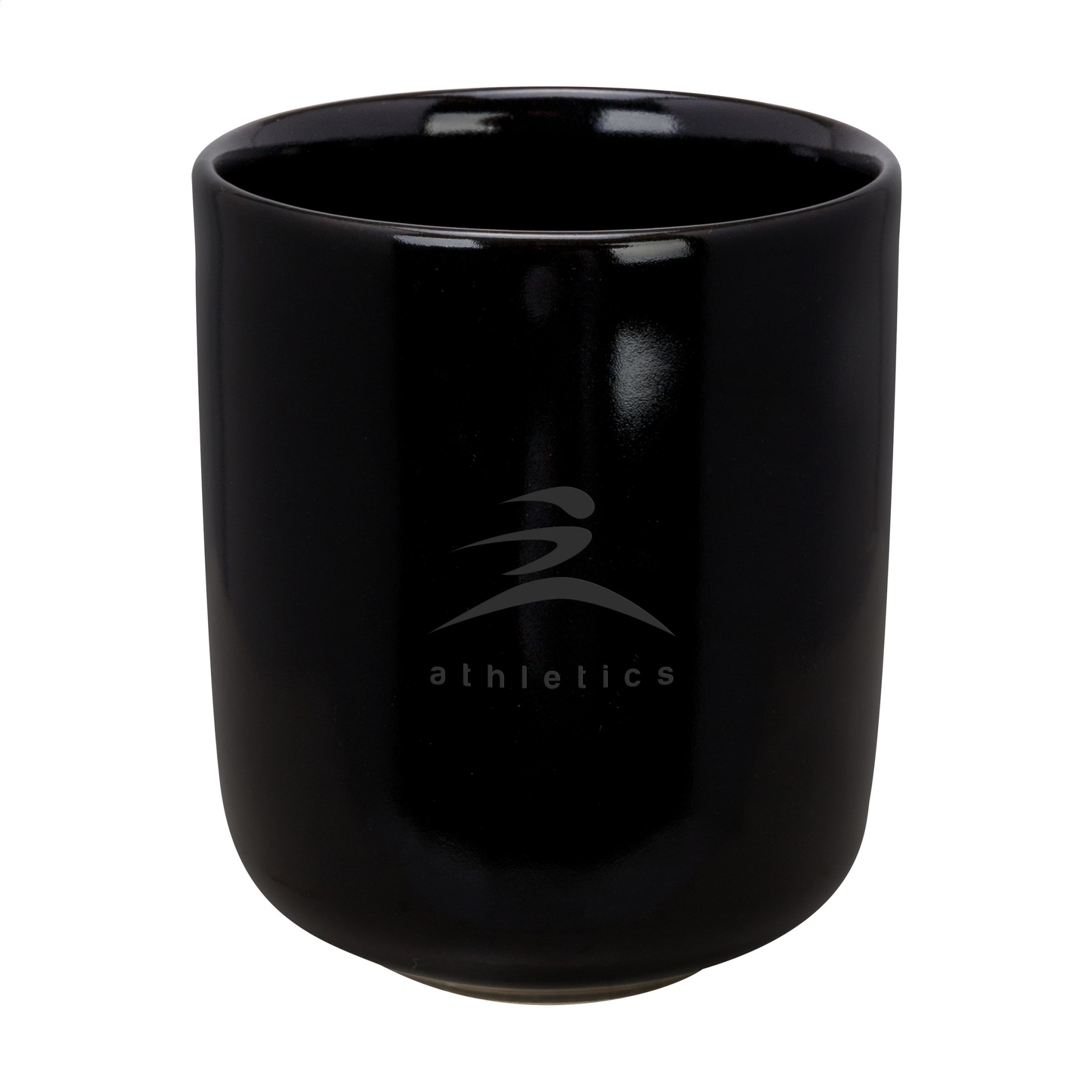 Stor, robust, högkvalitativ keramisk mugg utan handtag. Denna praktiska mugg har en tidlös design, är bekväm att hålla i och levereras med en halvmatt finish. Tål diskmaskin. Kapacitet 350 ml. Trycket är testat och certifierat tål maskindisk: EN 12875-2. Varje artikel levereras i en individuell brun kartong.