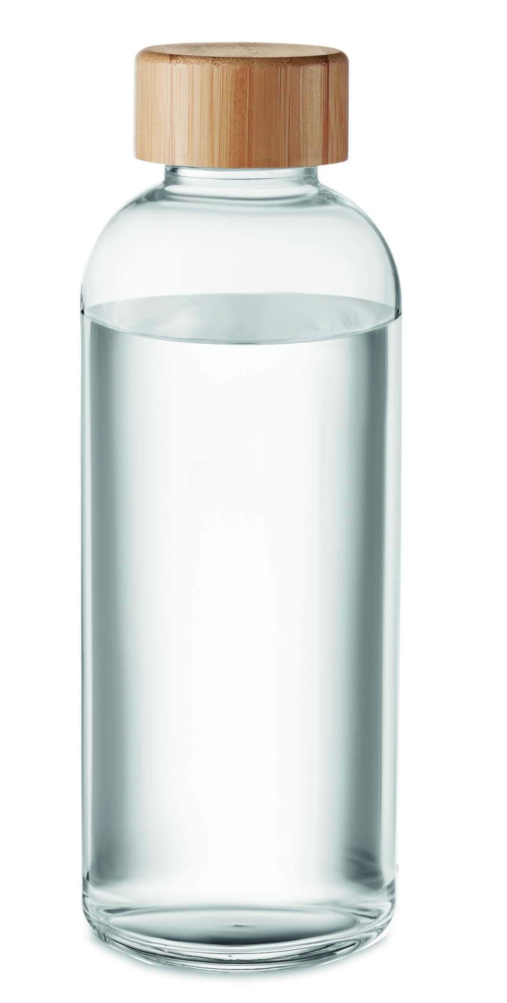 Glasflaska med lock av bambu. Kapacitet 650 ml. Flaskan tål diskmaskin utan lock. För diskmaskinsäker märkning välj lasergravyr. Läcker inte.