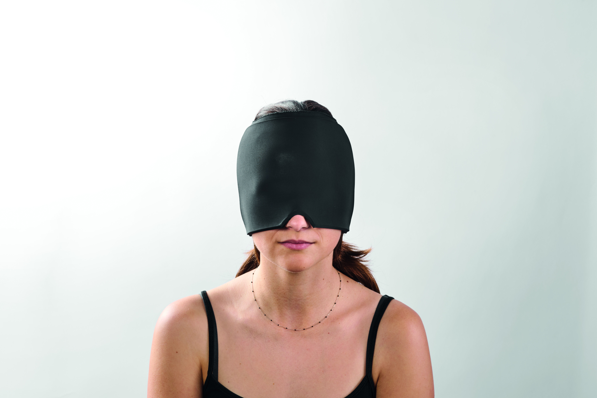 Huva med varm och kall kompress i töjbar och justerbar lycra. Motverkar huvudvärk, migrän och spänningar. En storlek passar alla.