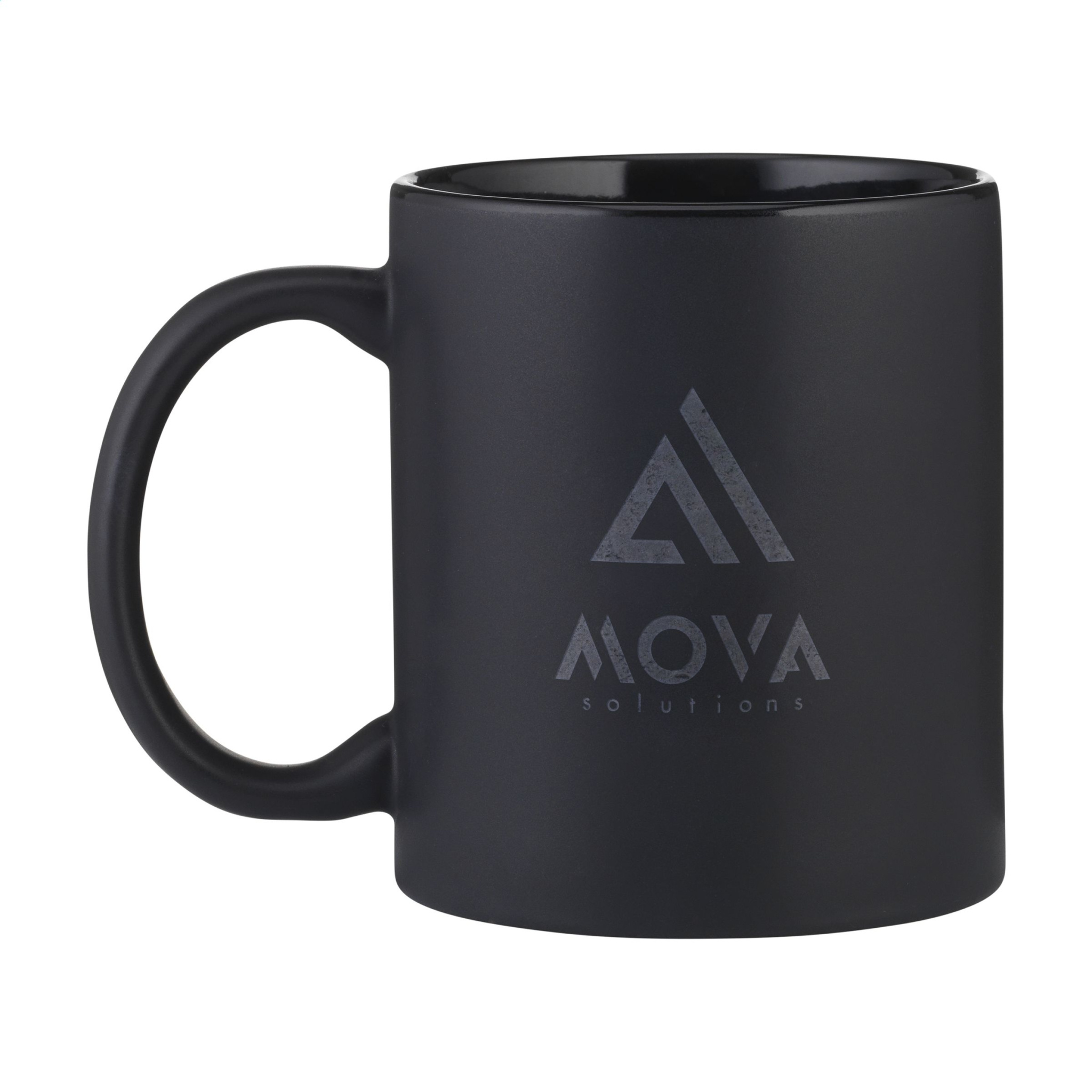 Högkvalitativ keramisk mugg med mattsvart utsida och blanksvart insida. Tål diskmaskin. Trycket är diskmaskinstestat och certifierat: EN 12875-2. Kapacitet 350 ml.