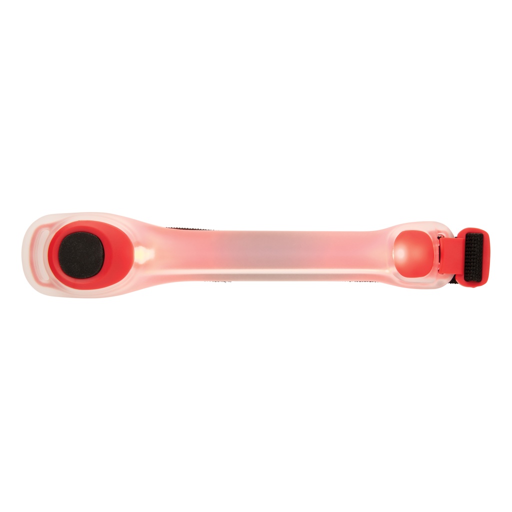 Säkerhetsband med inbyggd LED som enkelt kan spännas fast på armen. Spring säkert och upplyst.