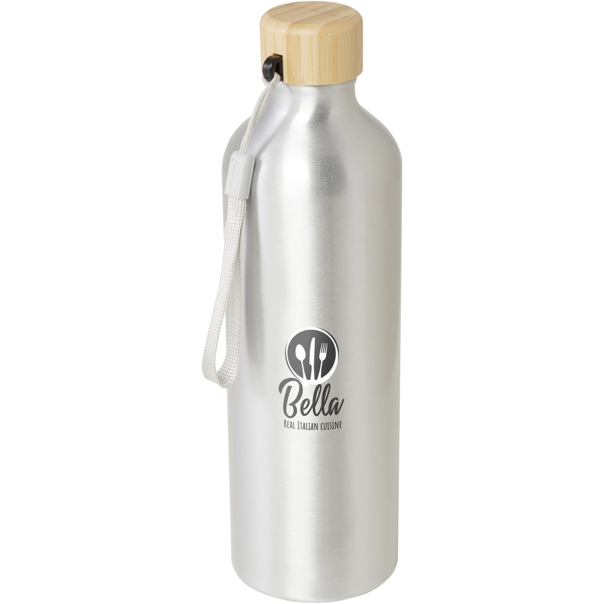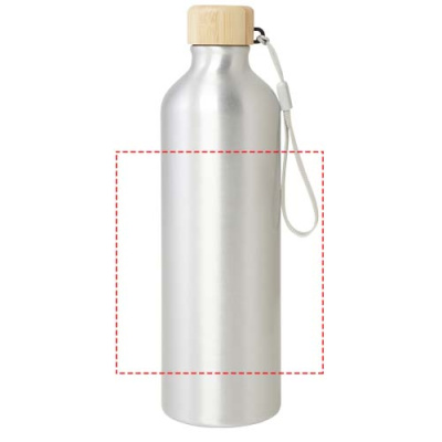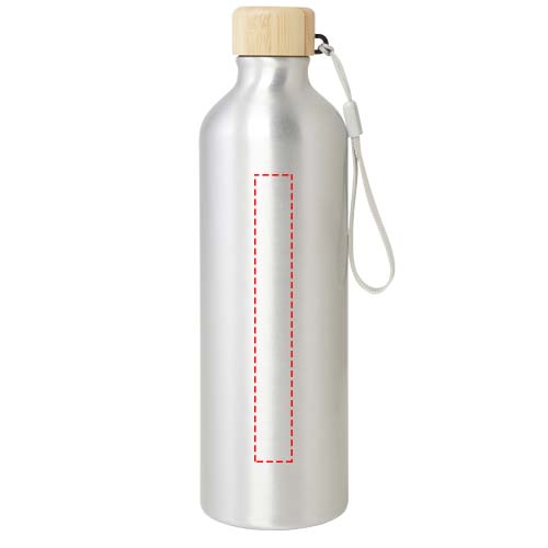 Vattenflaska av RCS-certifierad återvunnen aluminium med ett snyggt lock av bambu. Denna lätta flaska med enkelvägg levereras med en rem som gör den lätt att bära med sig. Bambun kommer från hållbara, miljömässigt och socialt ansvarsfulla källor. Kapaciteten är 770 ml. Endast handdisk.