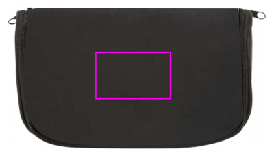 Toalettväska i 190T nylon med stort innerfack, 3 fack med blixtlås, 4 elastiska band och hängkrok. Vi trycker din logotyp på framsidan.