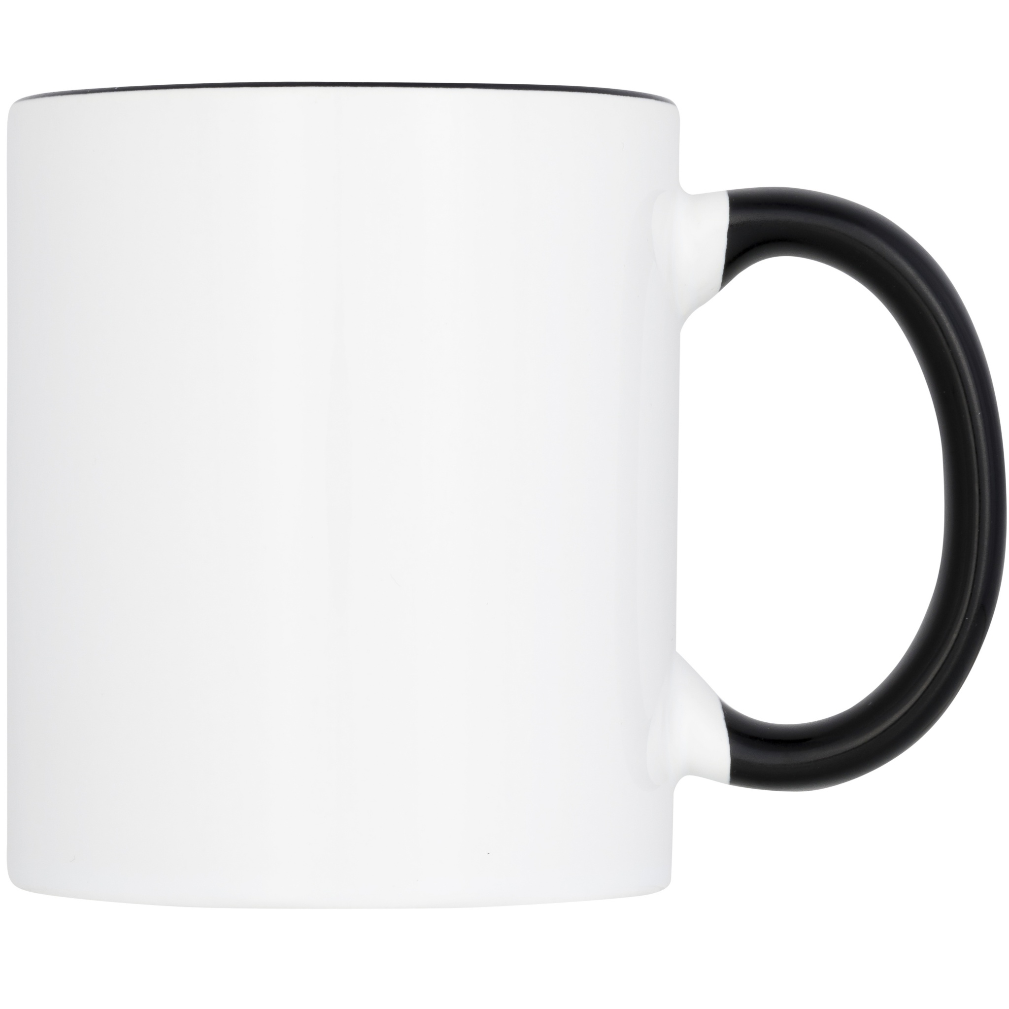 Denna klassiskt designade keramikmugg har en speciell beläggning för sublimering. Muggen har ett färgat inre med matchande handtag. Tål maskindisk enligt EN12875-1 (minst 125 tvättcykler) för alla dekorationsmetoder. Volymkapacitet 330ml. Presenteras i en vit kartong.