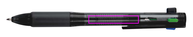 Plastkulpenna med 4 färgade skrivminor (blå, svart, röd och grön.) Din logotyp kommer att tryckas under klämman.