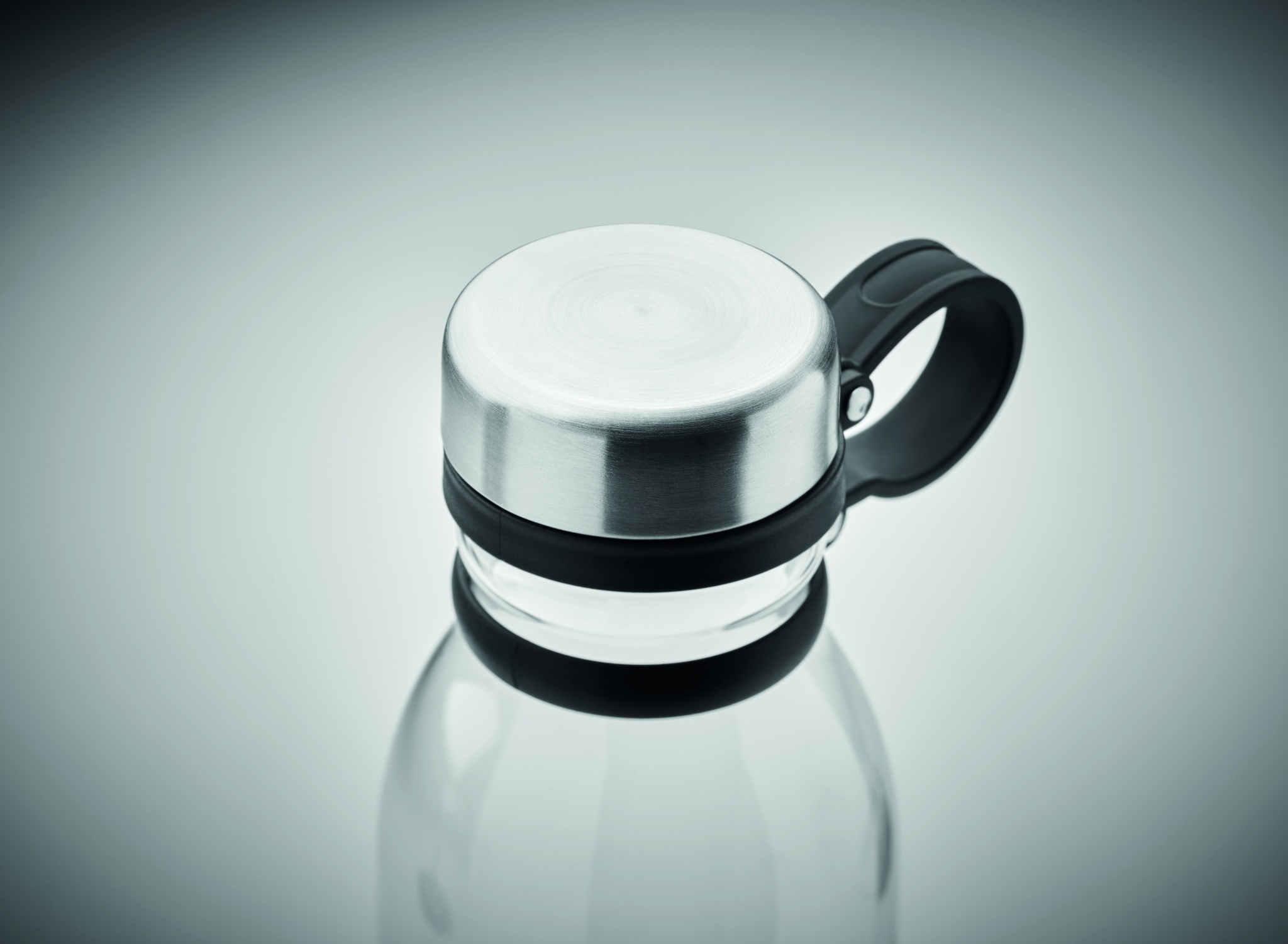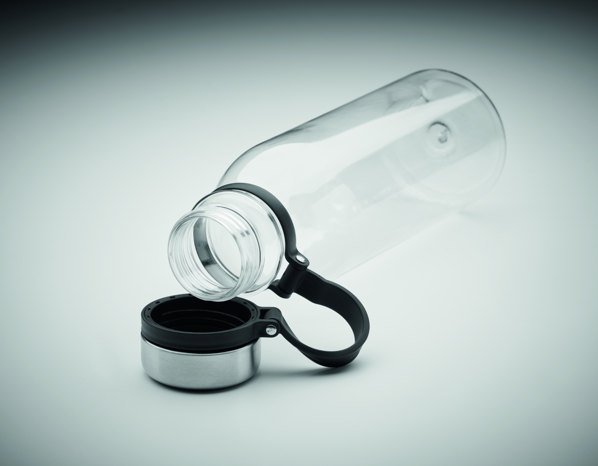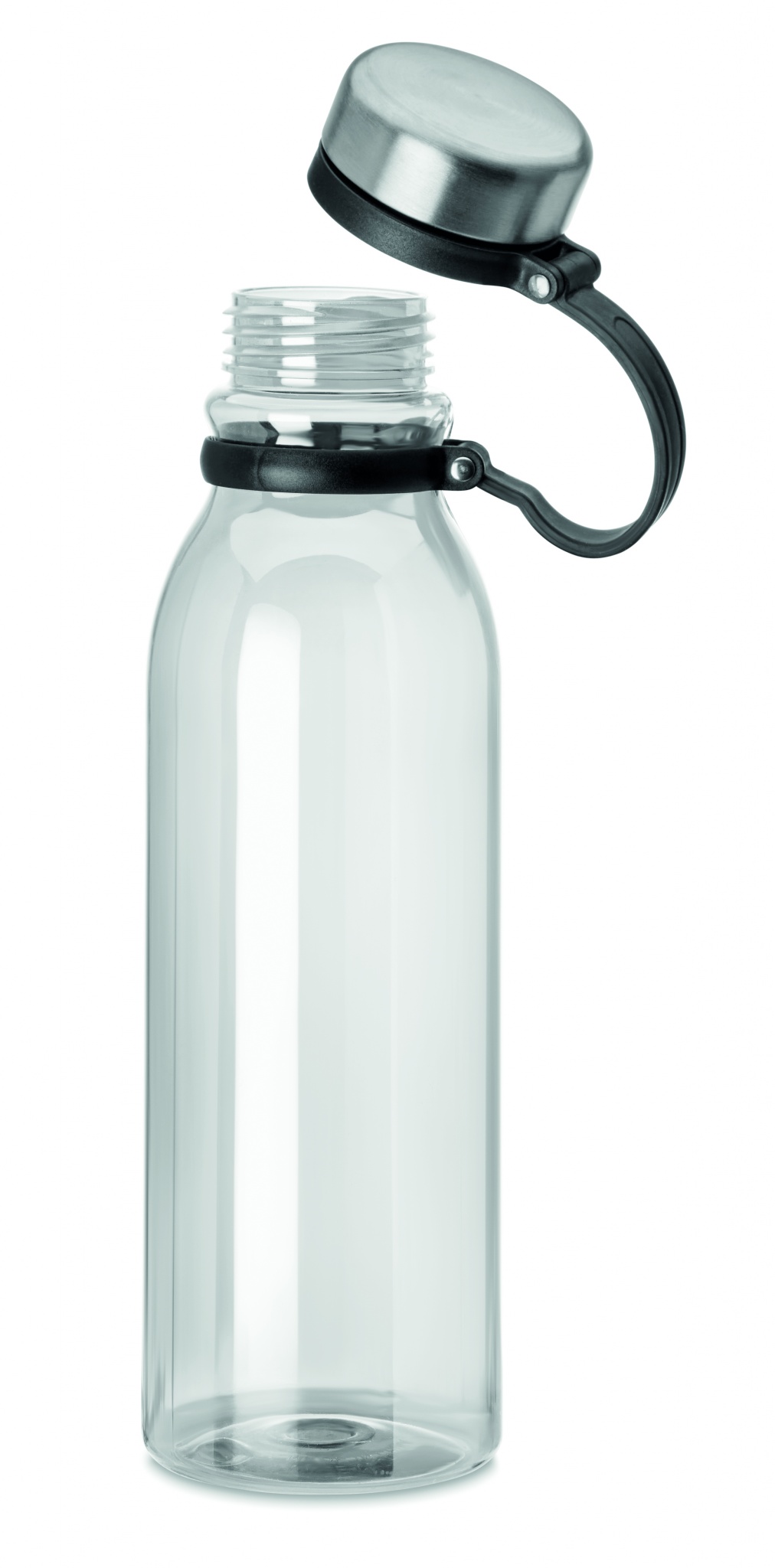 Dricksflaska i RPET med lock i rostfritt stål och TPR-grepp som gör det enkelt att bära. Fri från BPA. Läckagefri. Kapacitet: 780 ml. Ej anpassad för drycker med kolsyra. Läckagefritt.
