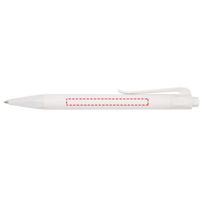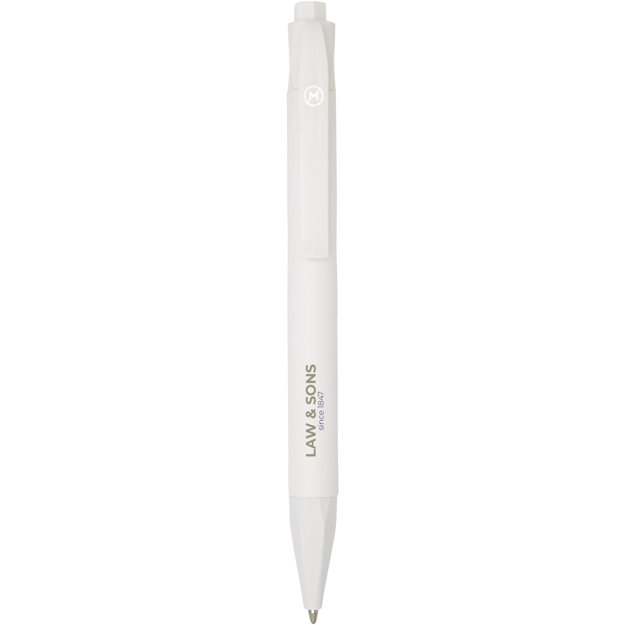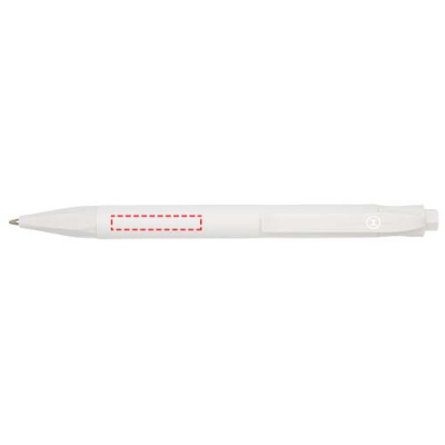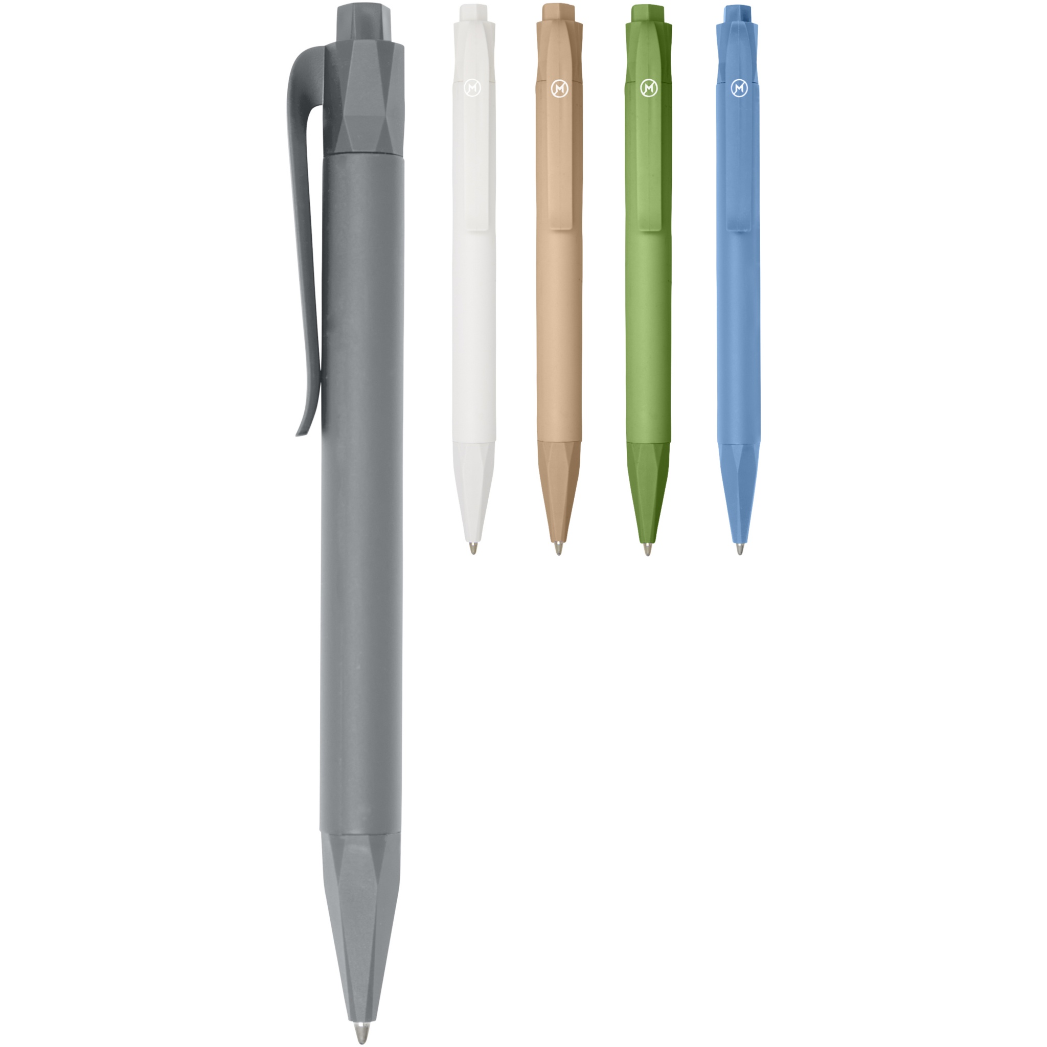 Klickfunktion, håller länge och påfyllningsbar kulspetspenna producerad från 100 % PLA (majsplast) vilket minskar mängden plast som används. Inkluderar en påfyllning med en skrivlängd på cirka 2 000 meter. Pennan levereras med en refill med blått bläck. Packad i ett kartonghölje för penna.