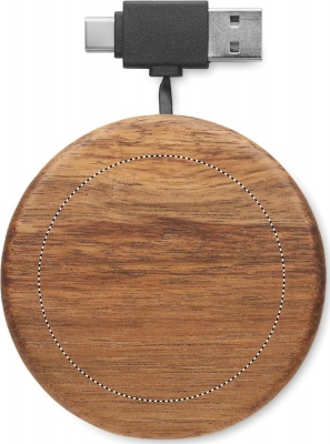 Logotrade presentreklam bild: Trådlös laddare i akacia 15W