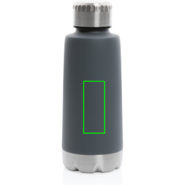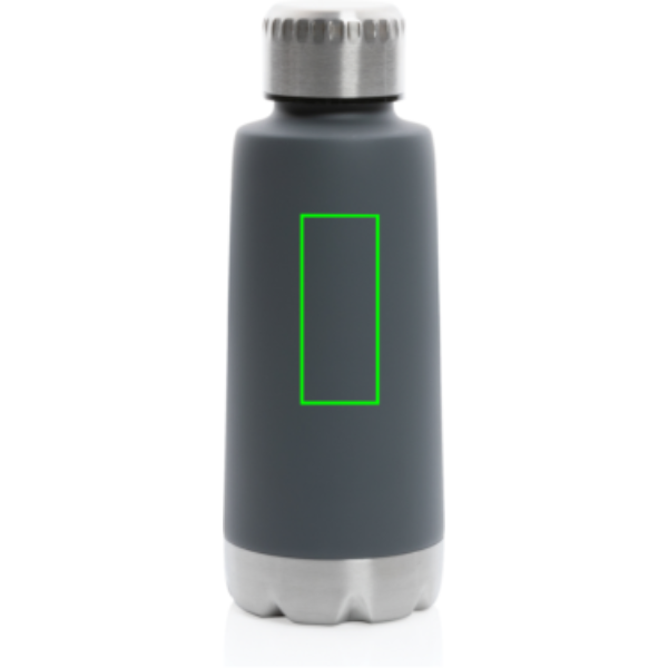BPA-fri flaska i praktisk storlek tillverkad i lättvikt stainless steel. Trend läckagesäker vakuumflaska hjälper dig att hålla vätskebalansen under kontroll. Unikt formad flaska med trendiga färger. Håller din dryck varm i upp till 5tim eller kyld upp till 15tim. Tack vare skruvlocket är flaskan läckagesäker så det är bara att ta med den i väskan. Volym: 350ml.