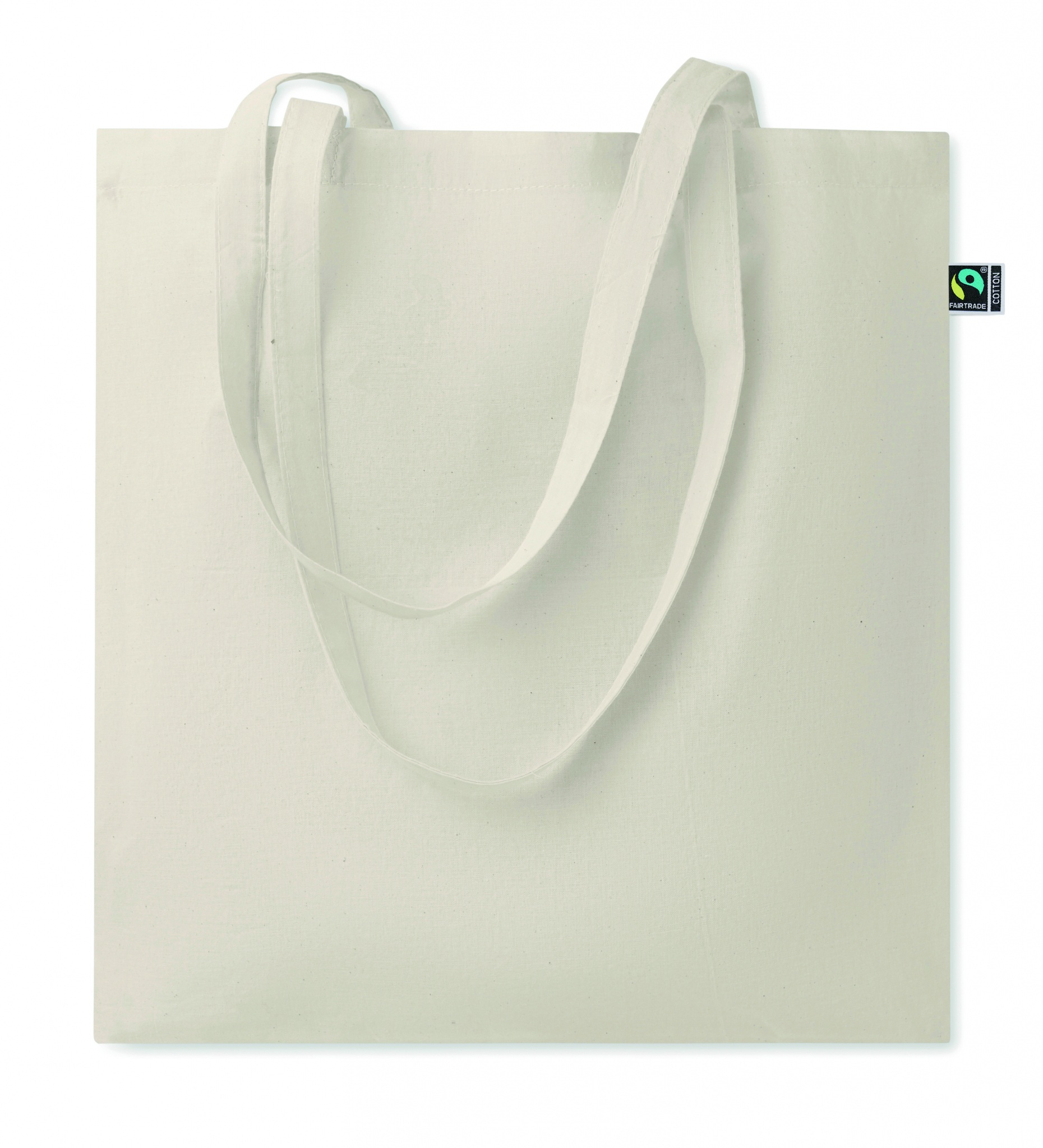 Fairtrade shoppingväska i bomull med långa handtag. 180 gr/m².