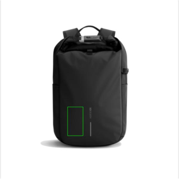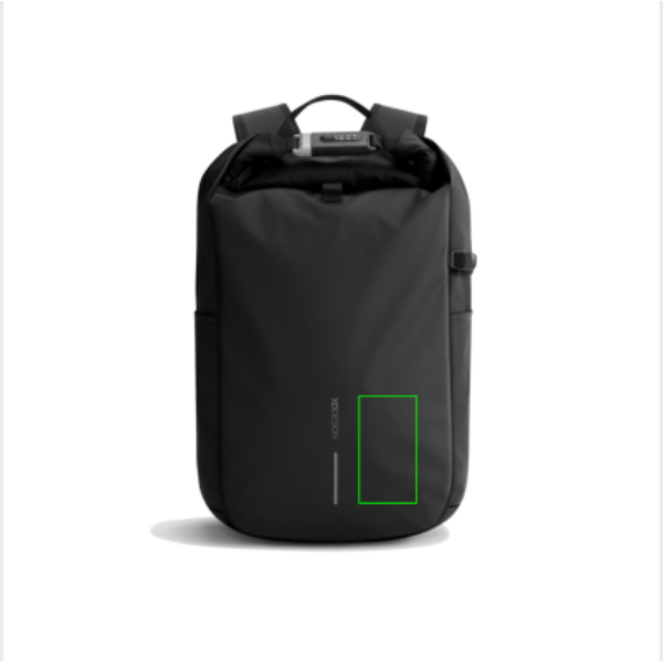 Den nya Urban stöldskyddad ryggsäck är ditt ultimata resesällskap som garanterar säkerhet och bekvämlighet. Genom att rulla ihop huvudfacket och säkra det med det förstärkta kombinationslåset får du en helt stängd ryggsäck, som också kan användas för att låsa väskan runt ett fast föremål. Dolda fickor på baksidan och en sidoficka för vattenflaska. Invändigt finns vadderade fack för en 16" bärbar dator och nätfickor för för bättre organisering av dina nödvändigheter. Tillverkad av Aware™-spårbar återvunnen polyester och försedd med en vattenavvisande PU-beläggning med soft touch. 11% återvunnet innehåll. Registrerad design®.