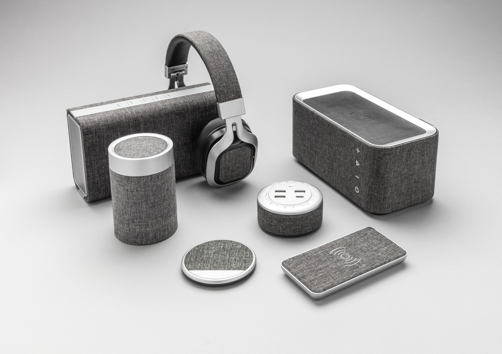 Logotrade kampanjprodukter bild: Vogue trådlös laddare och högtalare